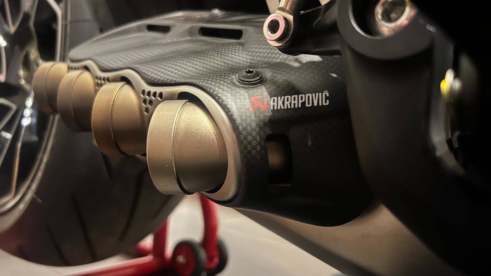 V ceně výfuky Akrapović, servisní stojan a opěrka spolujezdce, originál výfuk